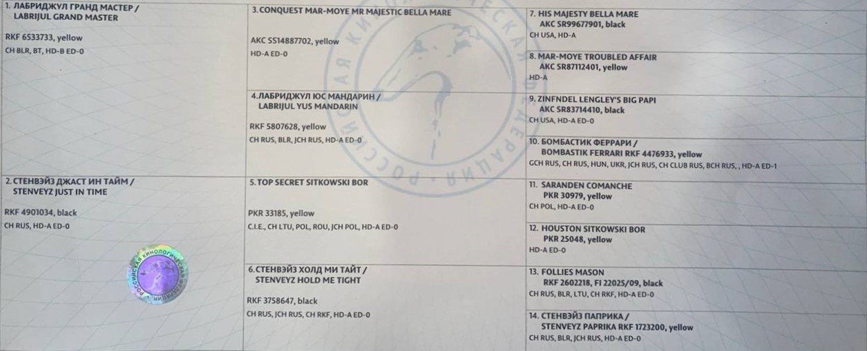 PRA-N/N, EIC - N/N, CMN-N/N, HNPK- N/N (чисто, здорова по родителям).