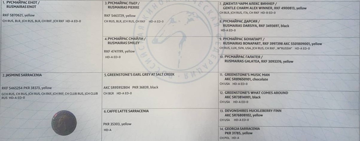 PRA- N/N, EIC -N/N, CMN- N/N, HNPK- N/N ( чисто, здорова).